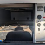 Camp-ready with an outside fridge, stove, and power awning.