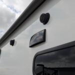 Outside solar hookup ready to maintain battery levels during off-grid stays.